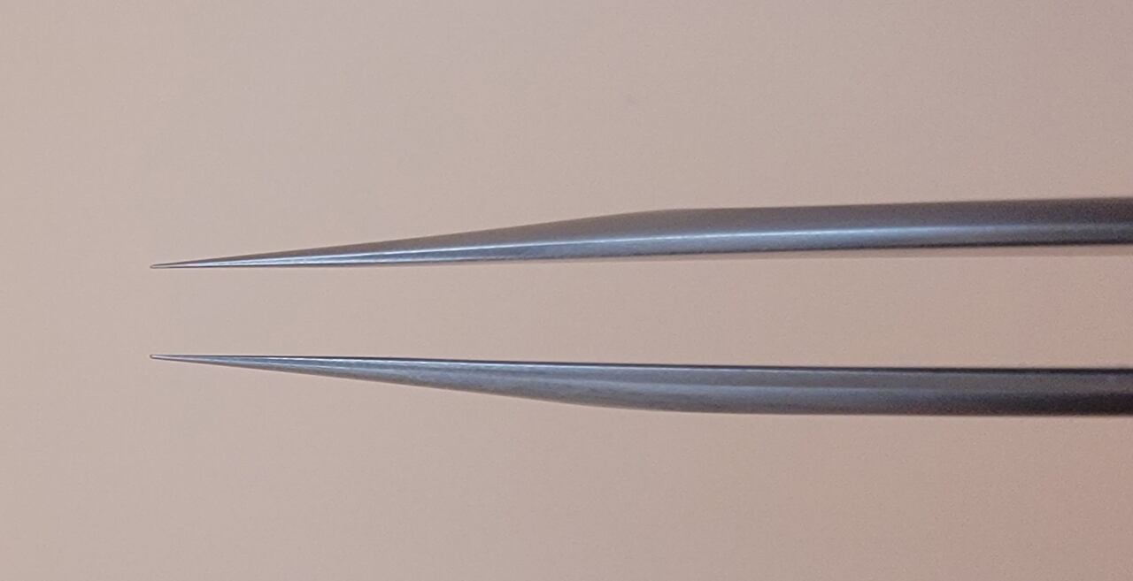ステリライザーに入れたままでも、ツイザーの形状(ストレート/カーブ)を判別できるよう、バネ部分の形状に違いを設けています。